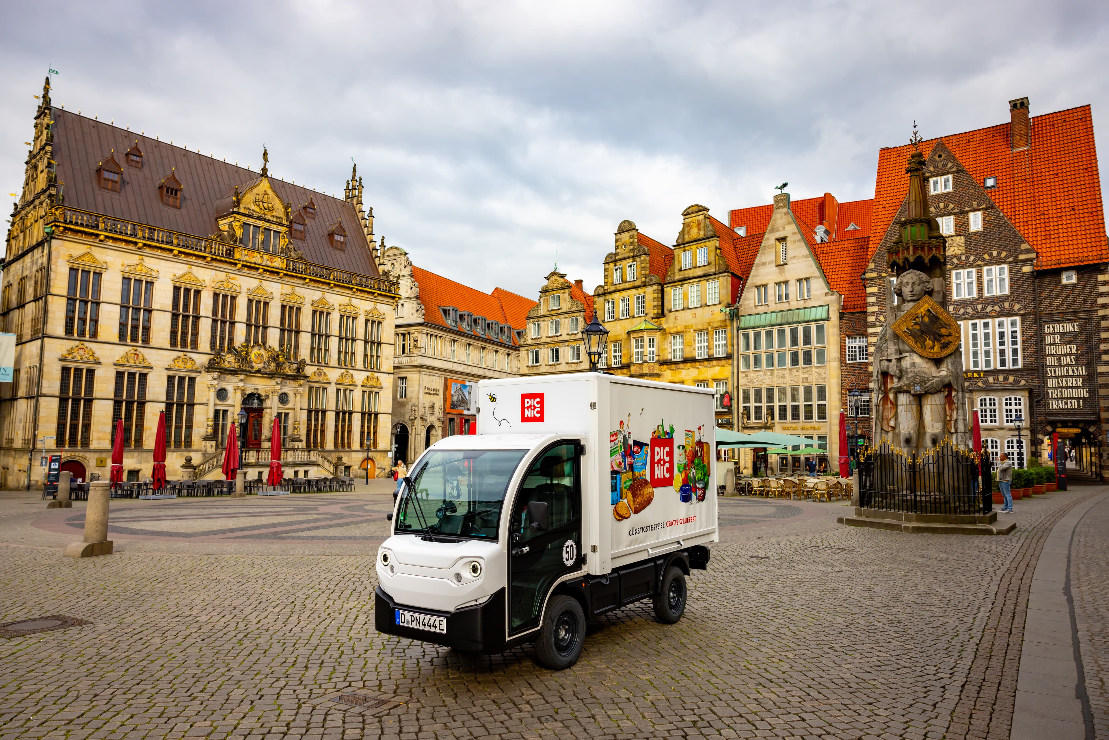Die EPVs (Electric Picnic Vehicles) sehen nicht nur süß aus, sondern minimieren mit ihrem elektrischen Antrieb den Ausstoß von Treibhausgasen. Darüber hinaus, hat Picnic einer der effektivsten Lieferketten in der Supermarktindustrie und verringert so die Verschwendung von Lebensmitteln. Versprochen!
