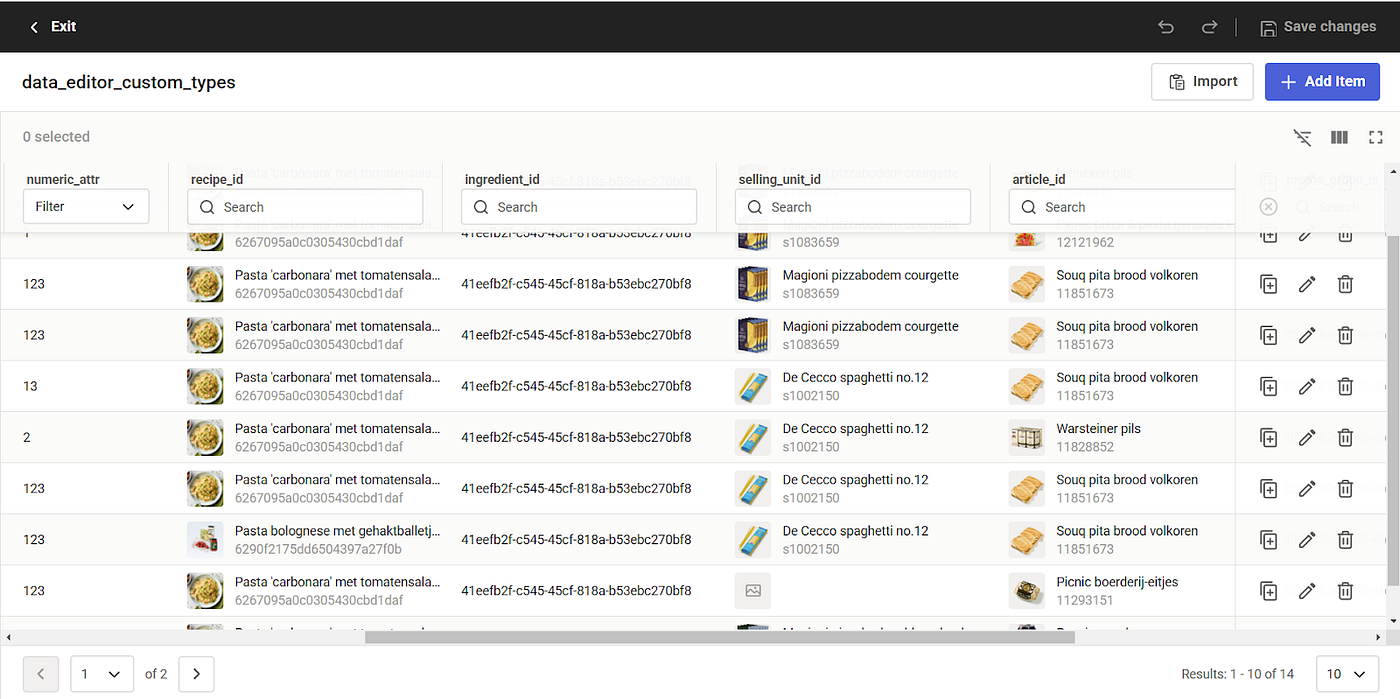 However, we wanted to go a step further: for any custom column type (let’s assume a column containing recipe IDs as example), we effectively have three key actions: